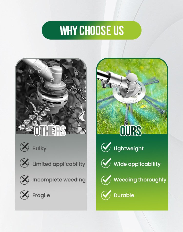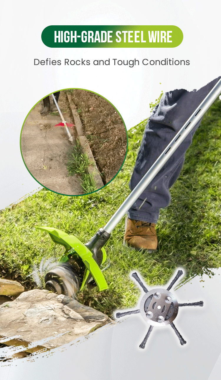 Experience powerful cutting performance with reinforced steel wire blades designed to handle tough weeds, thick grass, and stubborn growth. The sharp rotating wires easily remove unwanted vegetation while maintaining smooth and controlled operation.